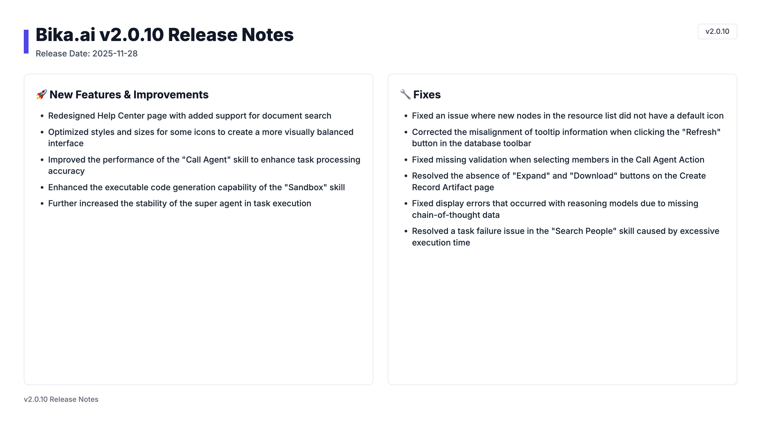 - Improved the performance of the “Call Agent” skill to enhance task processing accuracy