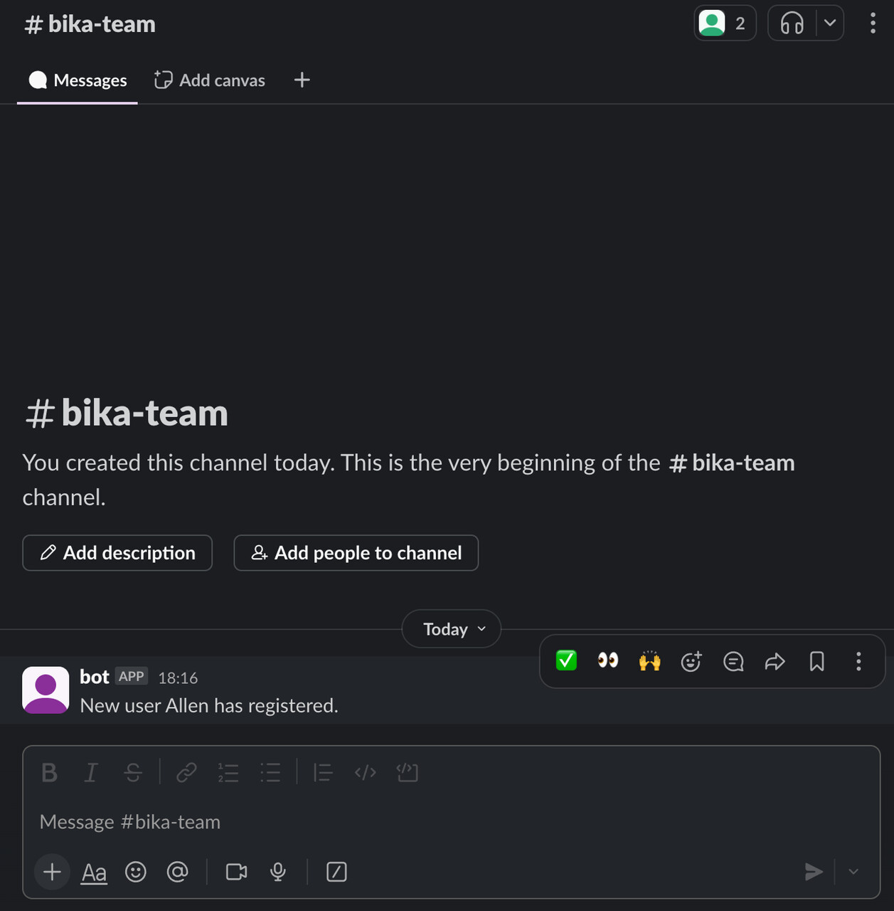 Now team members in the Slack channel will receive real-time alerts about new users.
