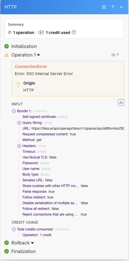 It seems like the issue might be on the make side. Could you try sending a request to this endpoint separately using Postman to see if it works properly? Because when I test it with Postman on my side, it works fine