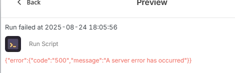 Hmm, not sure I fully get what you mean by “not delimited as JSON output” – the screenshot shows your Run Script output is already a JSON object, and the HTTP response looks properly formatted too.