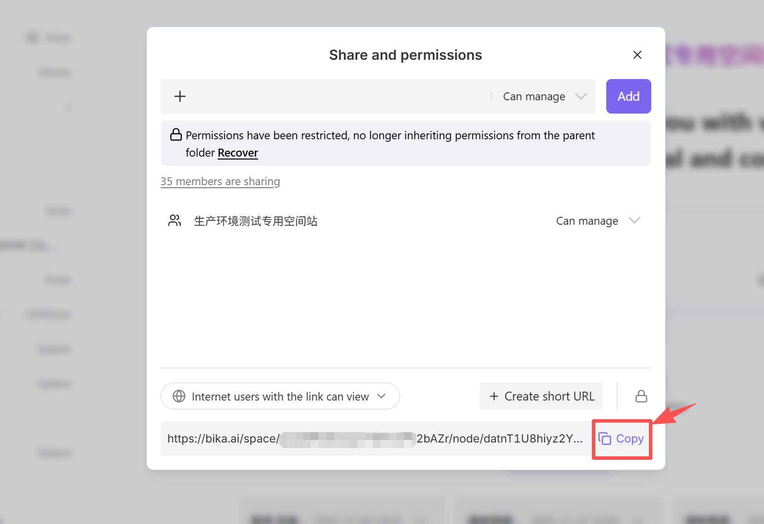 - Click the Copy button below to copy the link.