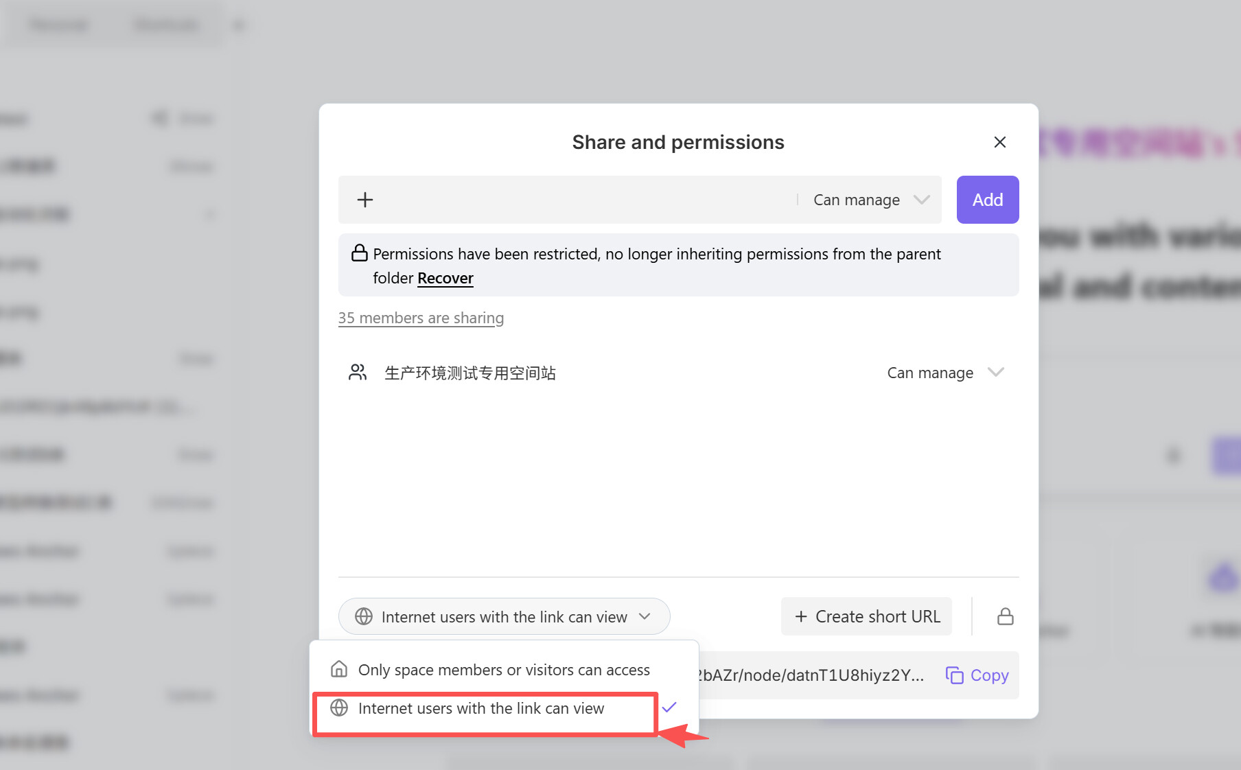 - Go to the sharing permissions page and select “Internet users with the link can view.”